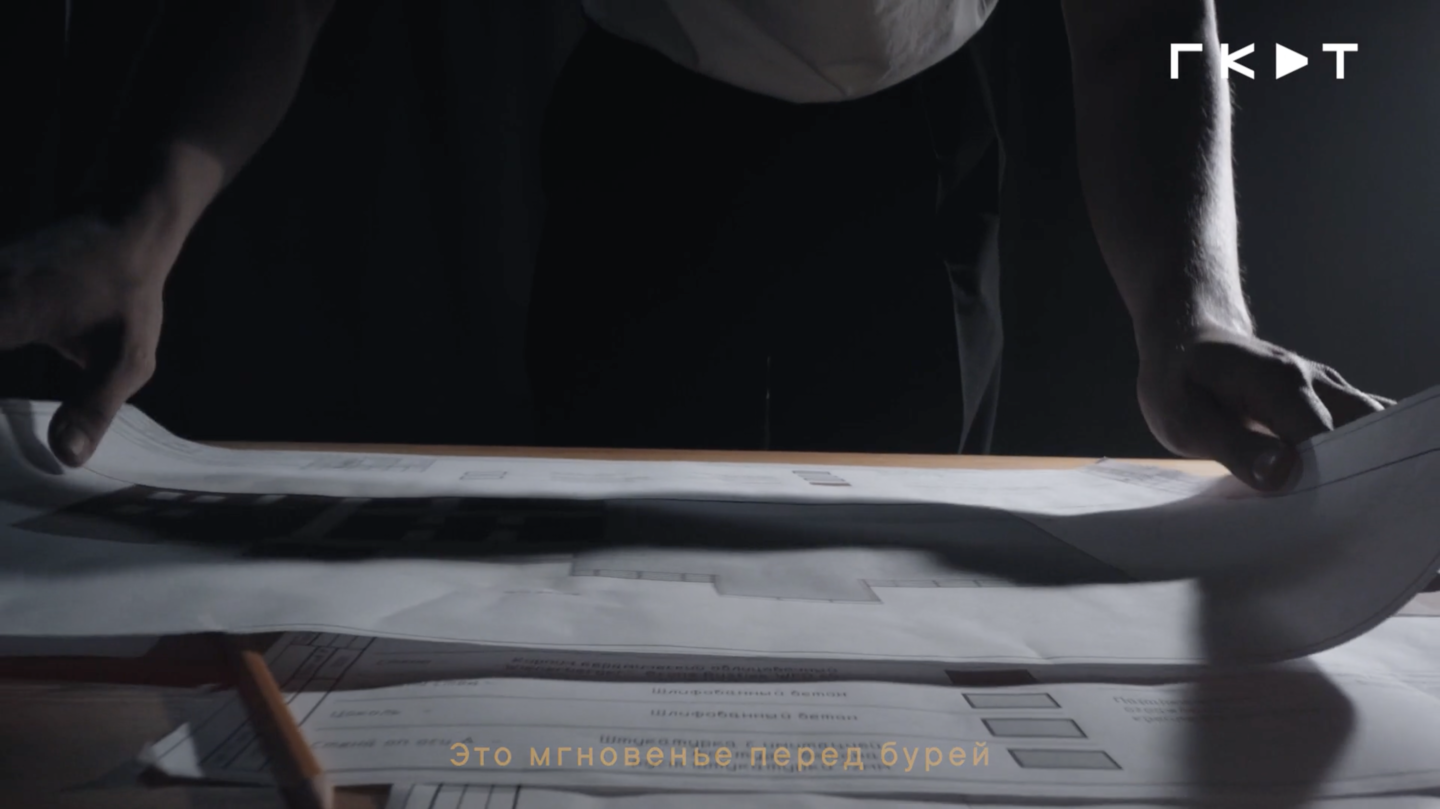 По нашей концепции реализованные проекты бюро показаны через собирательный образ архитектора, инженера и проектировщика. В лице одного актёра мы объединили опыт, накопленный за десятилетия, и постоянно обновляющийся инновационный подход, который ГКДТ применяет в каждом новом проекте.